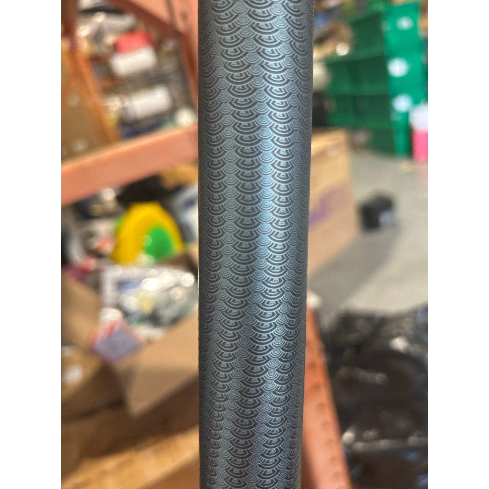 Lightweight and durable with bronze metal fittings, textured non-slip grip, and a fish-scale carbon finish. Includes original woven sleeve marked “Precision Fishing Gear.”
