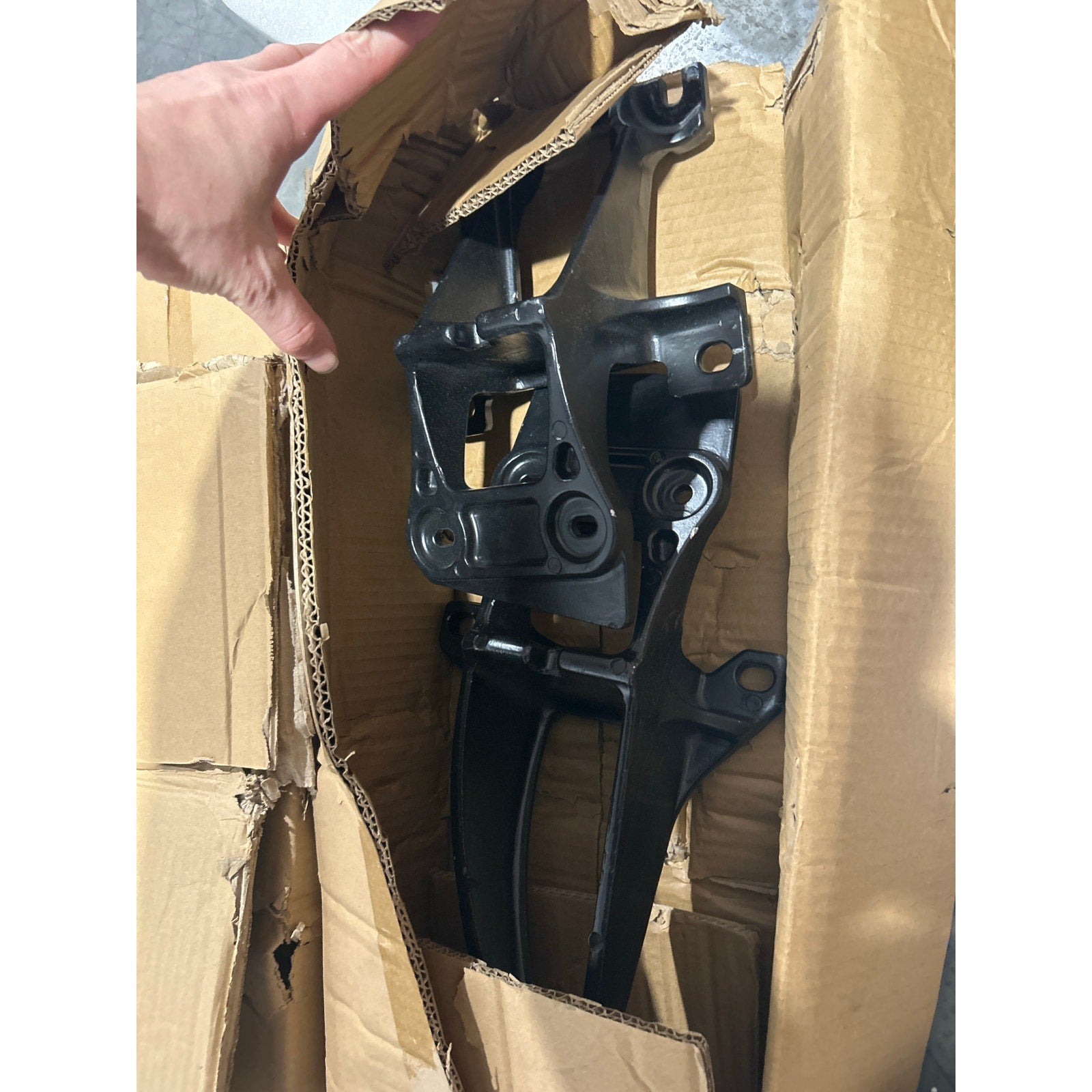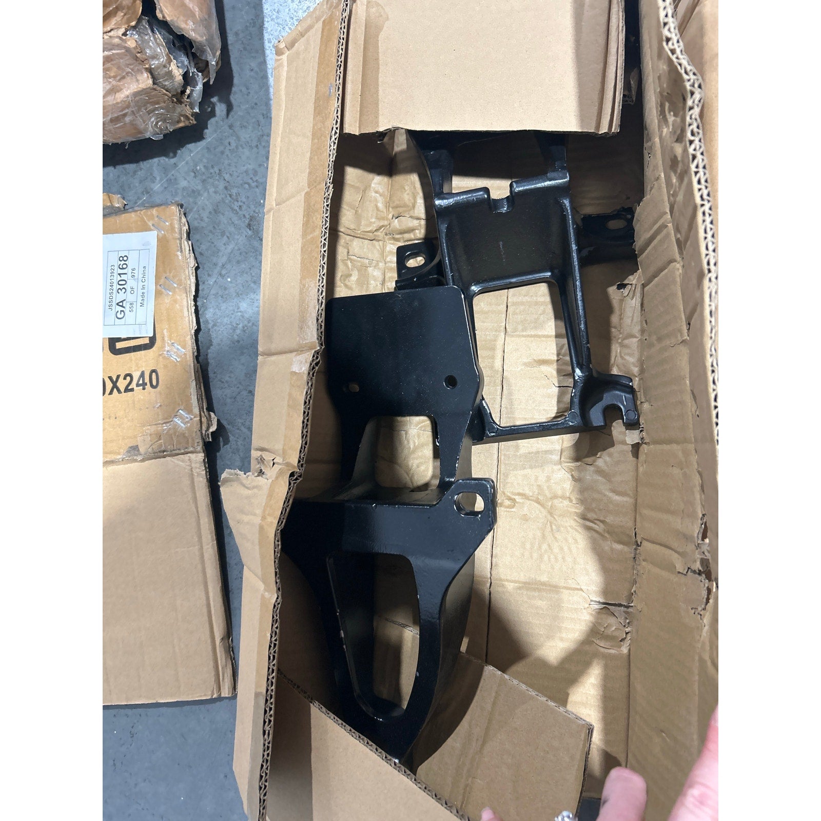 pair of 47-inch flat running boards with gently curved molded ends and textured non-slip step surface. Solid black powder-coated metal construction with matching steel mounting brackets included. Universal-style fit compatible with many midsize and extended-cab pickups or SUVs — please measure your rocker length and verify bracket alignment for your model before installation. Adds a clean, factory-style look and safe step access for entering or exiting the cab. Verified complete set with hardware. Minor signs of use, as pictured.