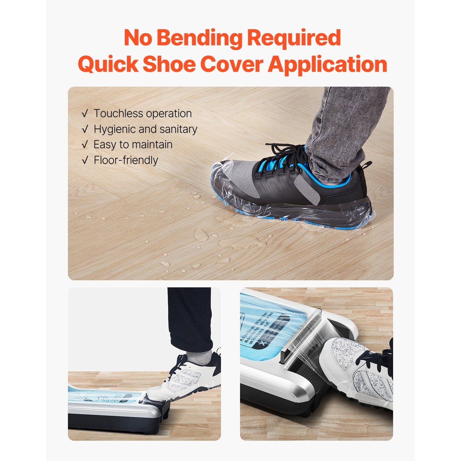 Brand new in box. Hands-free automatic shoe cover dispenser designed to keep floors clean in homes, offices, labs, and workspaces. Made with a durable ABS shell and PE plastic film, it applies non-slip protective covers with a simple step-in motion. Holds up to 600 disposable sole covers from an 80-meter roll and fits shoes up to US men’s size 11. Features a serrated cutting edge for clean dispensing and a sturdy design for reliable daily use.