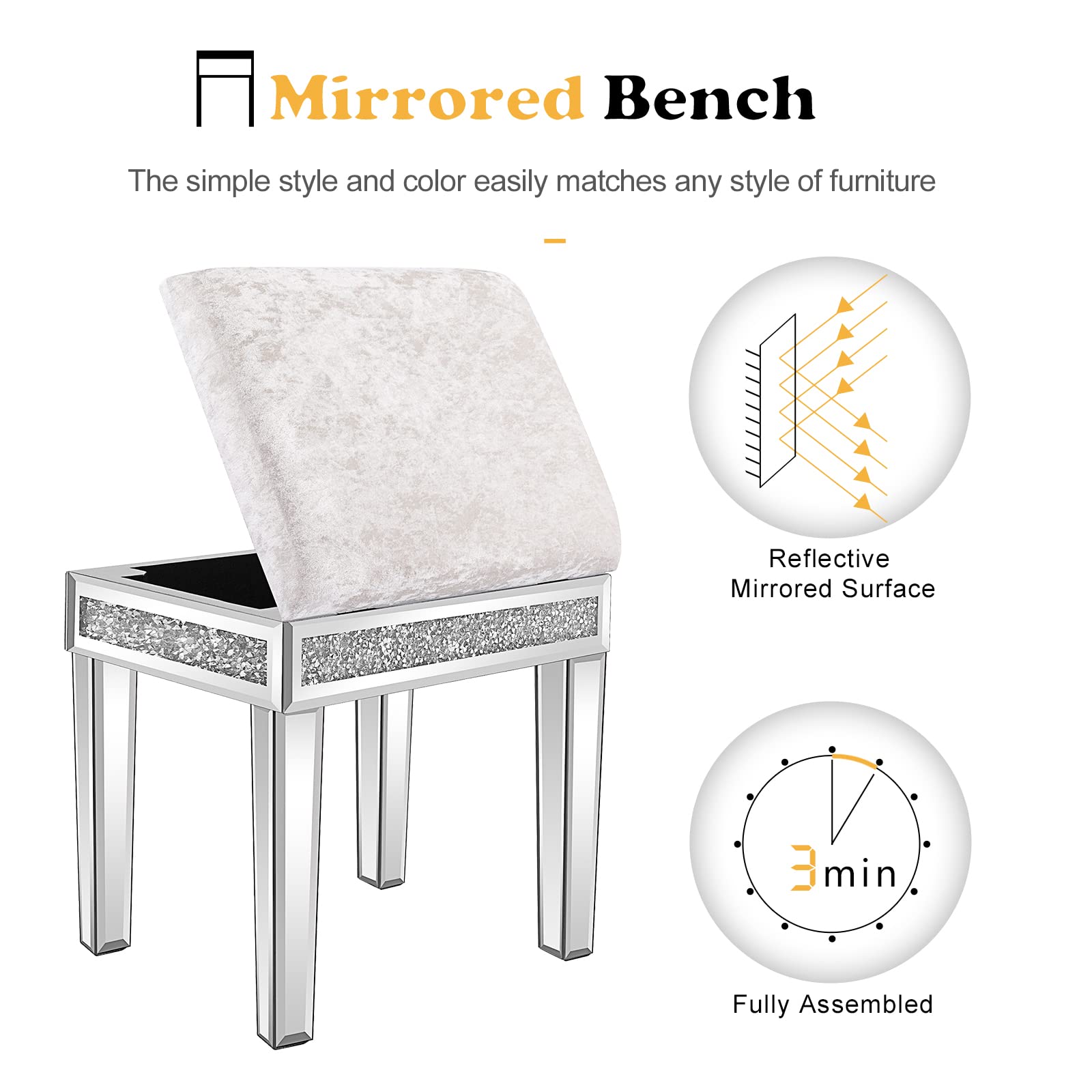 Elegant Mirrored Vanity Stool with Hidden Storage, Brand New