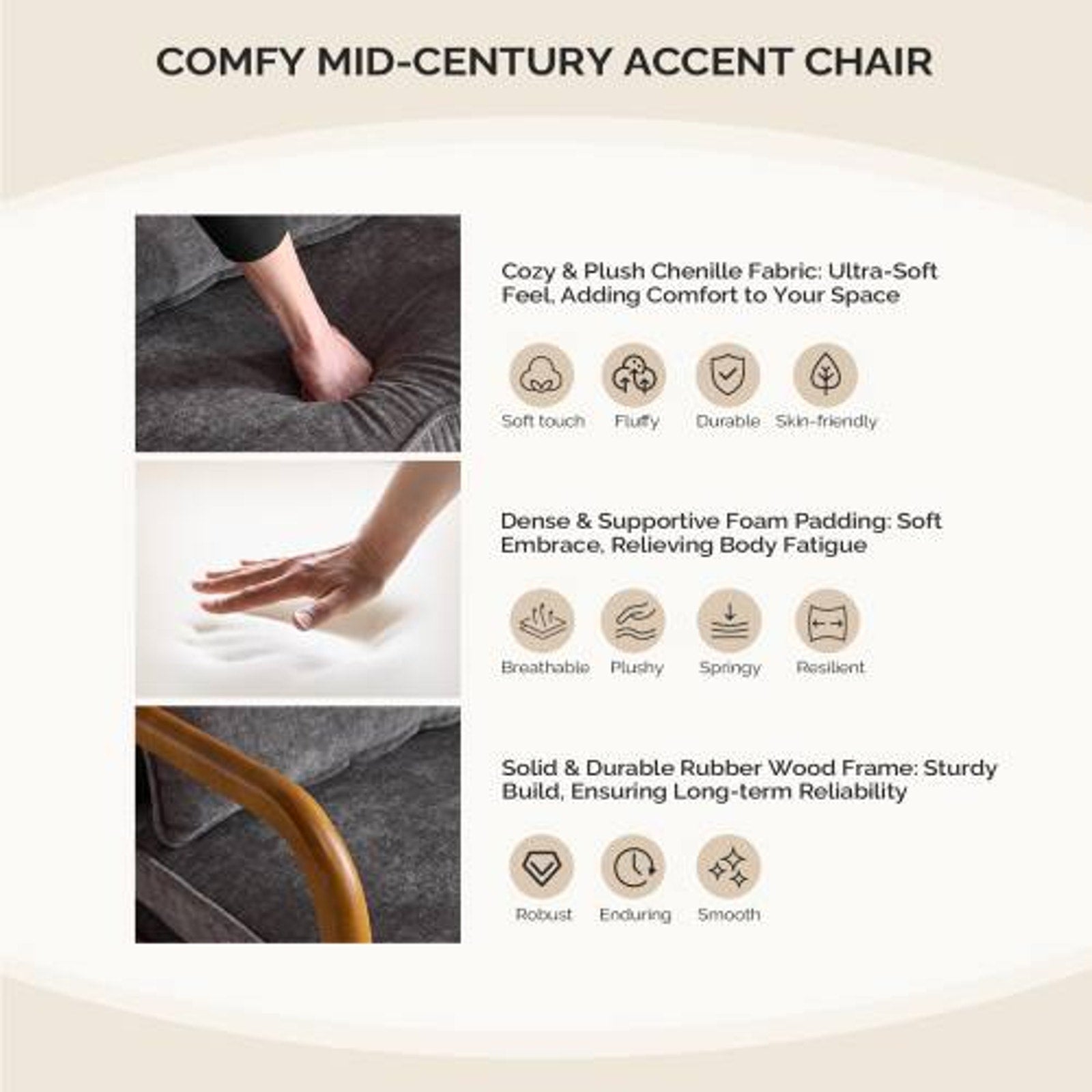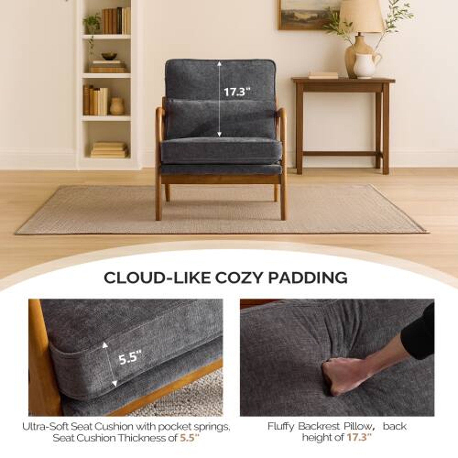 Mid-Century Modern Chenille Accent Chair with Wood Frame & Pillow