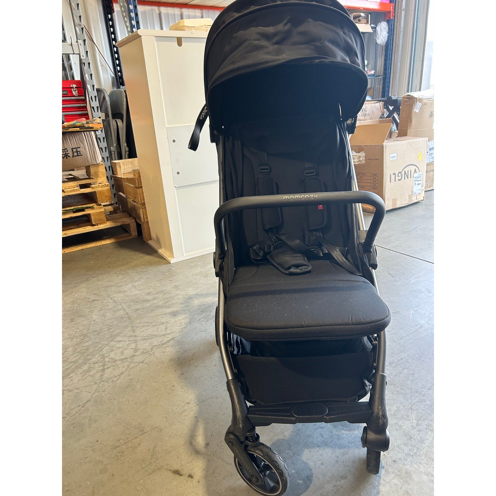 The Momcozy ClickGo Stroller is a lightweight, travel-friendly stroller designed for easy use and comfort. It folds quickly with a smooth one-hand, one-step mechanism, perfect for families on the go. The stroller offers a stable, effortless glide thanks to 360° swivel wheels and all-wheel suspension. Built from durable aluminum and polyester fabric, it features an extendable UPF50+ canopy with a peekaboo window and a secure 5-point harness. Suitable for children from newborn to 3 years, it supports up to 50 lbs and weighs just 19.6 lbs. This stroller has been tested and remains in excellent, like-new condition.