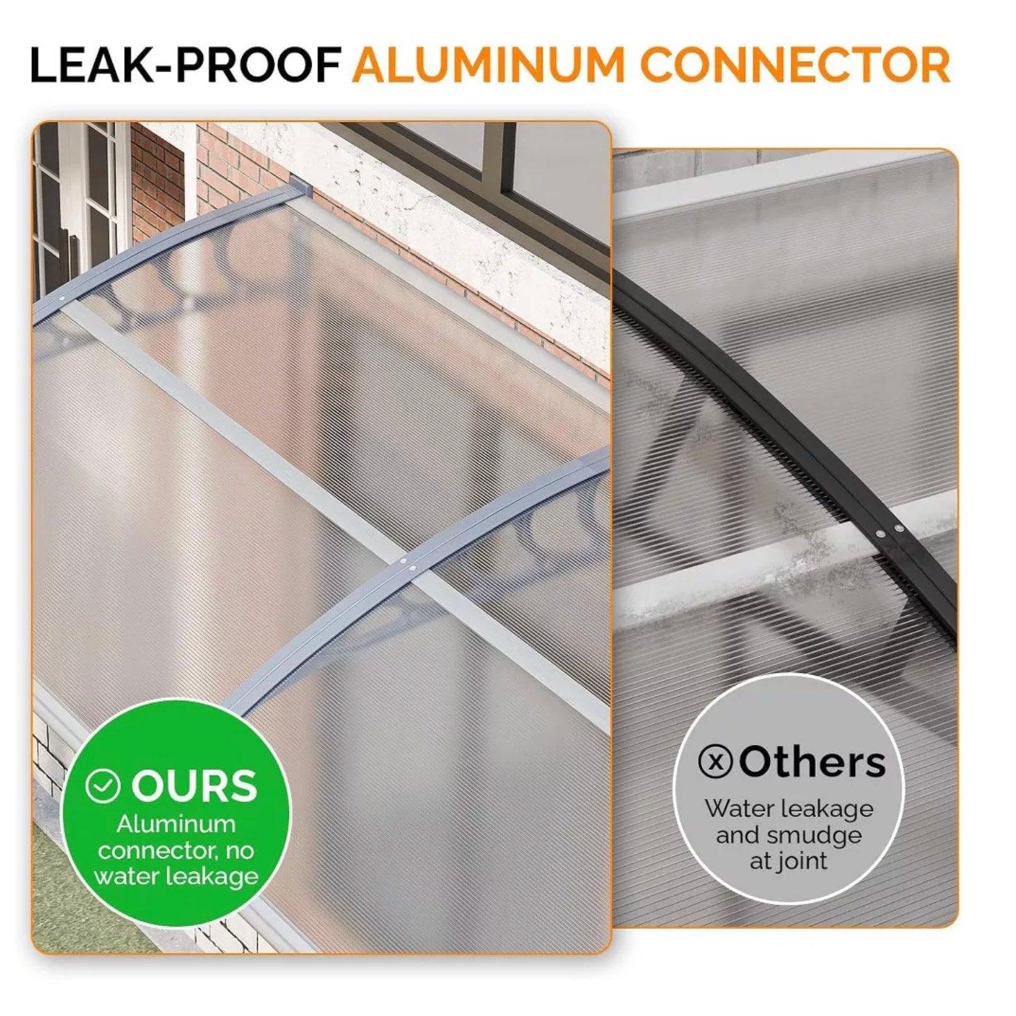 Brand new in box, this modern arched window and door awning provides dependable year-round protection while adding a clean, stylish look to your exterior. Measuring approximately 39.3 inches wide, 29.1 inches deep, and 9 inches high, it features durable hollow polycarbonate panels paired with rust-resistant aluminum bars and high-strength ABS plastic brackets for long-lasting outdoor performance. Designed to shield entryways from rain, snow, and harmful UV rays, it helps keep doors, windows, patios, and walkways dry and shaded through every season. The sleek curved design boosts curb appeal without sacrificing function, and installation is simple with included step-by-step instructions and visual guides, with two-person mounting recommended for best results.
