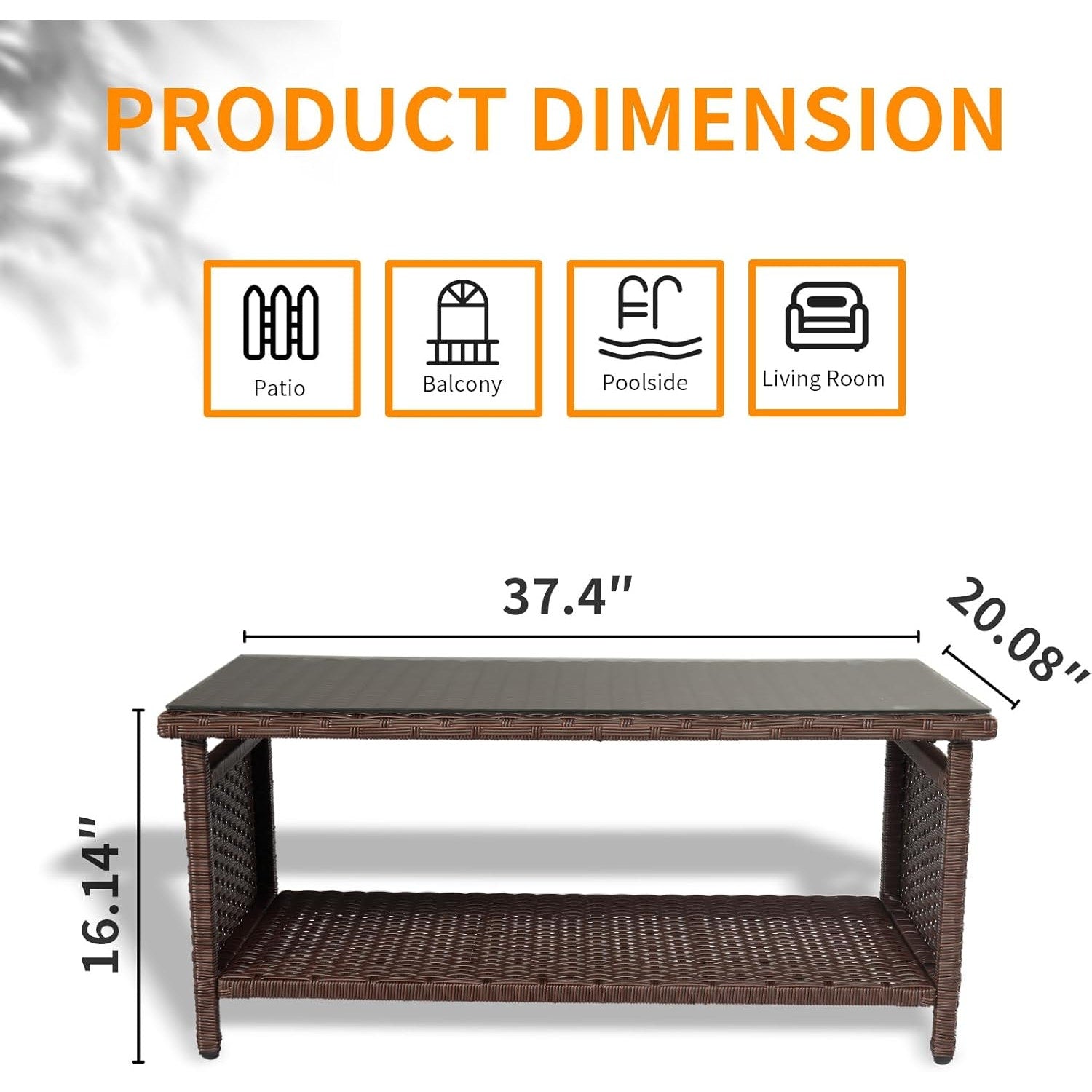 Outdoor Wicker Coffee Table with Tempered Glass Top- Patio, Deck, Porch -New