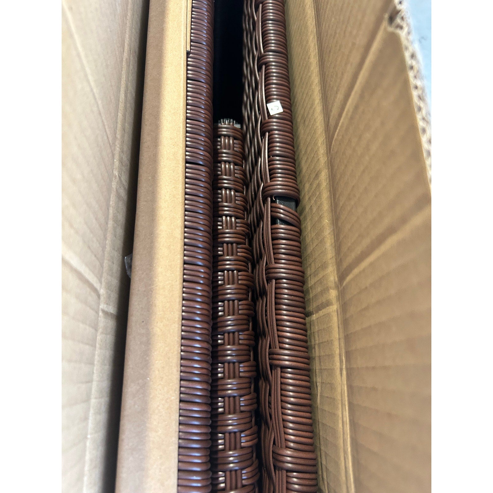 All-weather brown rattan coffee table with tempered glass top and sturdy steel frame. Easy to clean, durable, and perfect for patios, decks, or porches. This item is brand new in box.