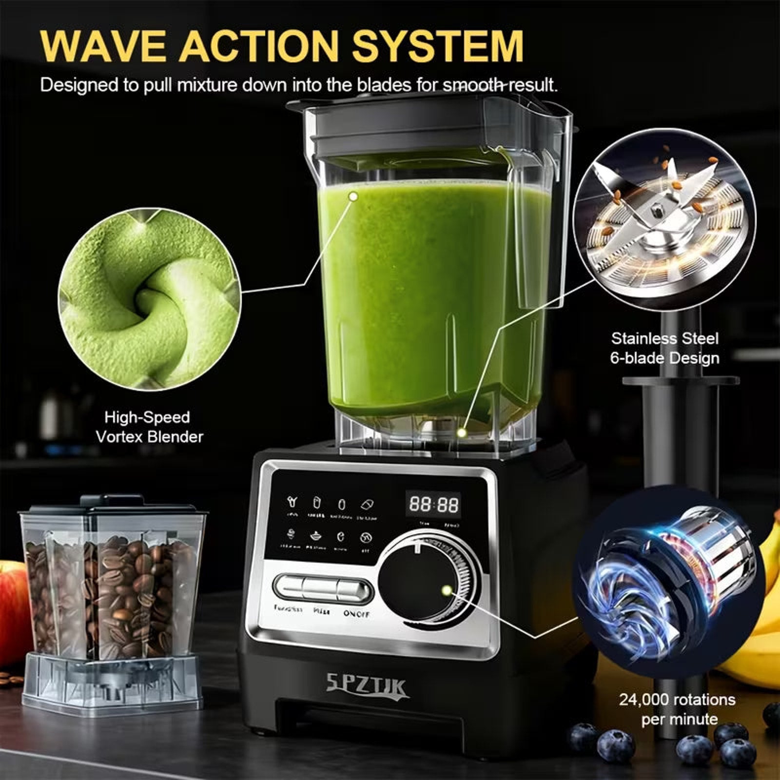 Professional 25,000 RPM High Speed Blender and Grinder Combo