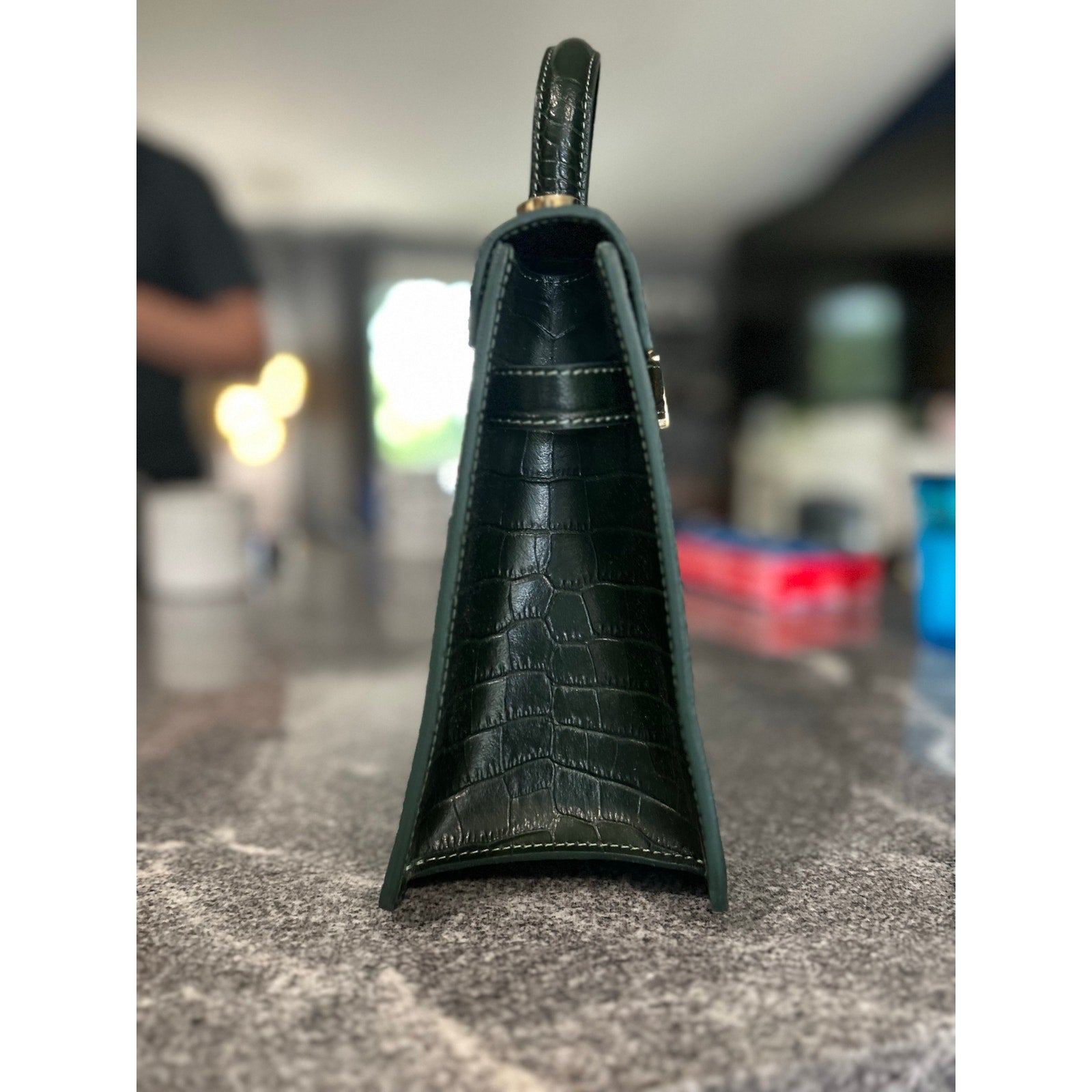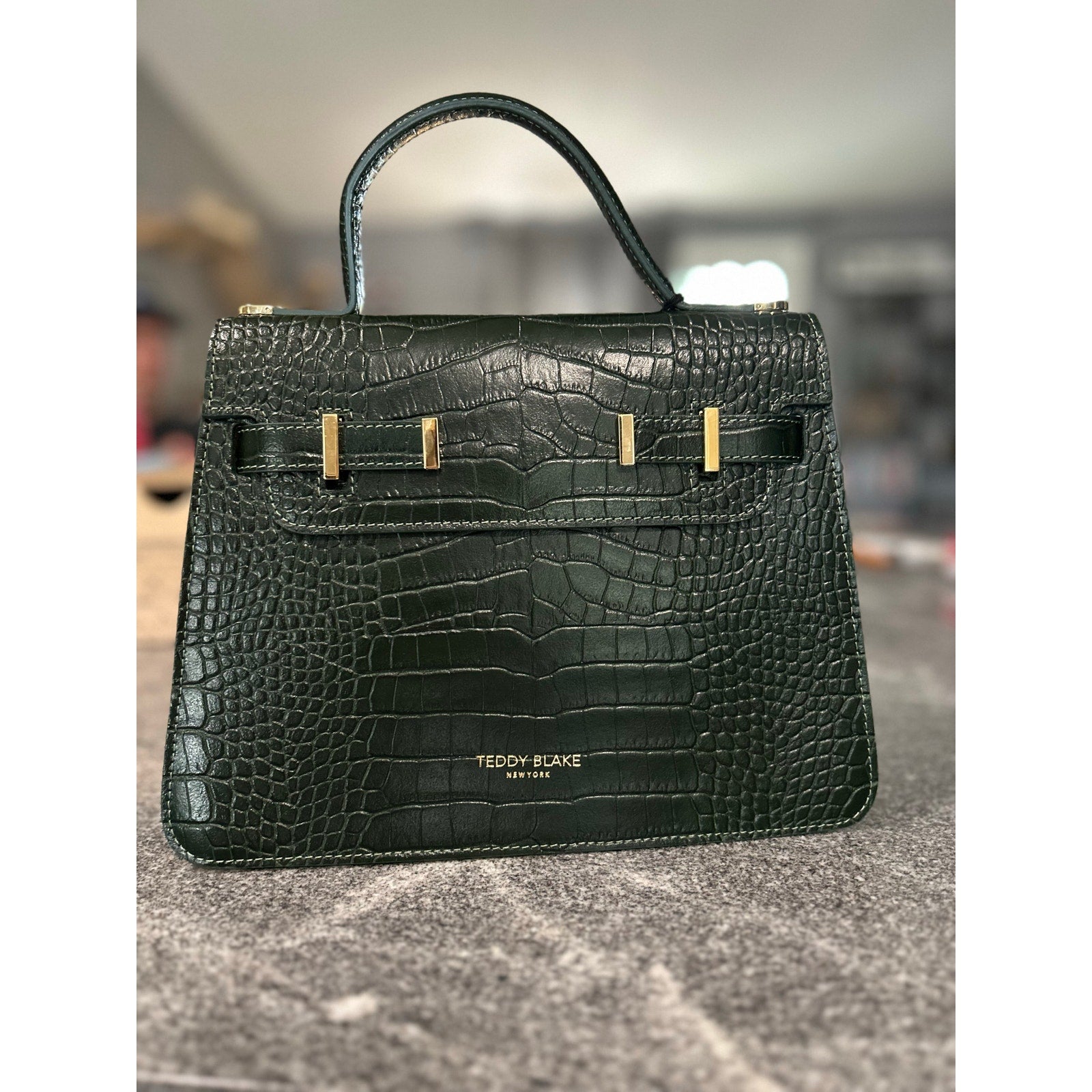 Luxury style at an affordable price. This authentic Teddy Blake “Ella” handbag comes in a stunning verde (deep green) croc-embossed leather with gold hardware. A timeless 14-inch structured silhouette, perfect for everyday wear or special occasions.