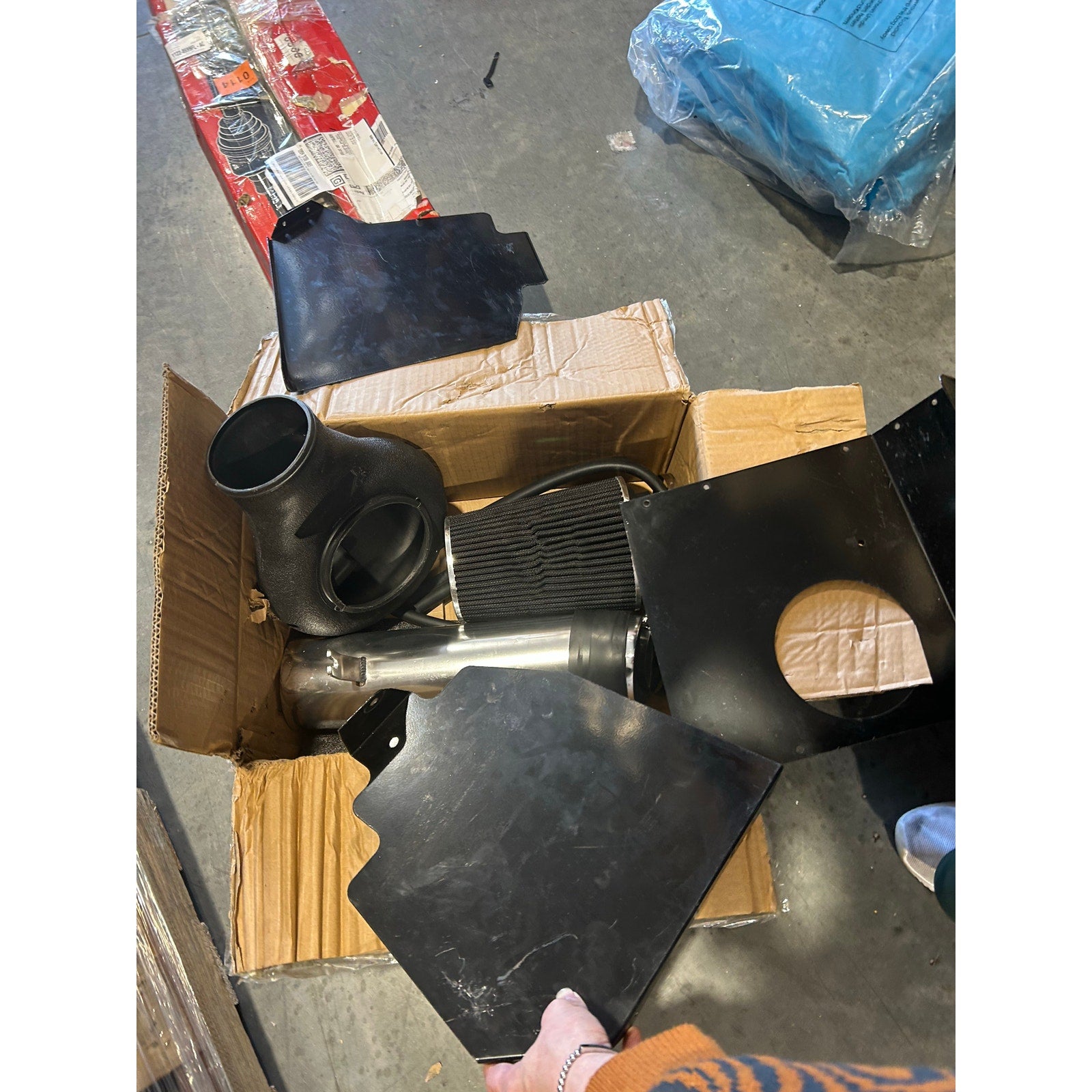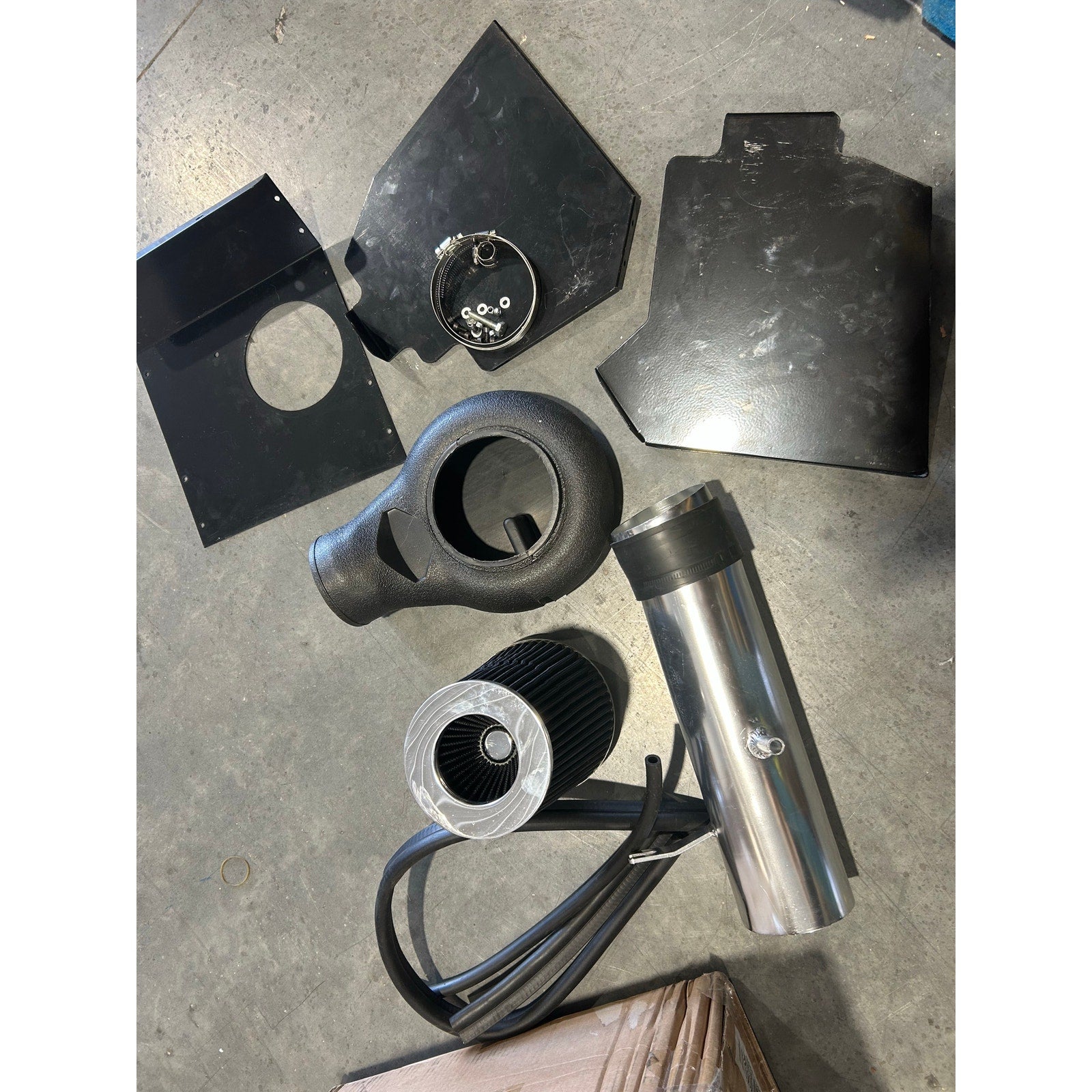 Brand-new universal cold air intake system designed to improve airflow and engine performance. Includes a polished aluminum intake pipe, high-flow washable air filter, and modular heat-shield panels for easy custom installation.