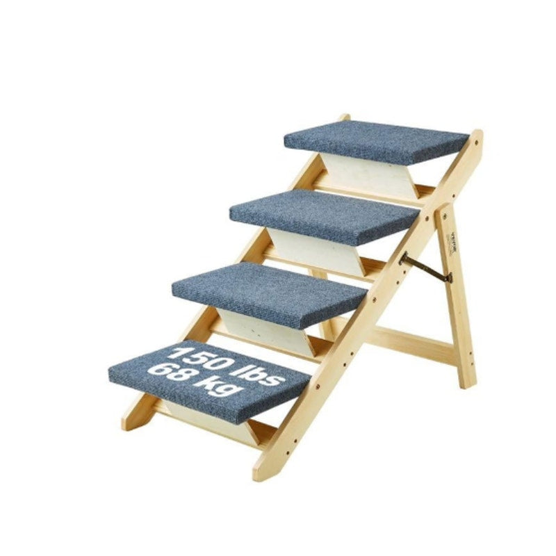 Wooden Pet Stairs & Ramp – 4 Step Foldable Dog Ladder for Bed, Sofa, Car – Up to 150 lbs